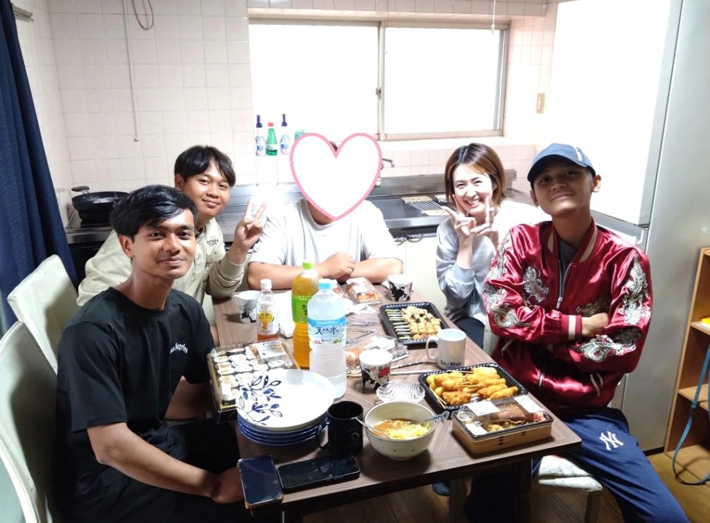 3年目に入った実習生たち。社長とスーパーに行って「あれ食べたい、これも食べたい」と遠慮なし(笑)