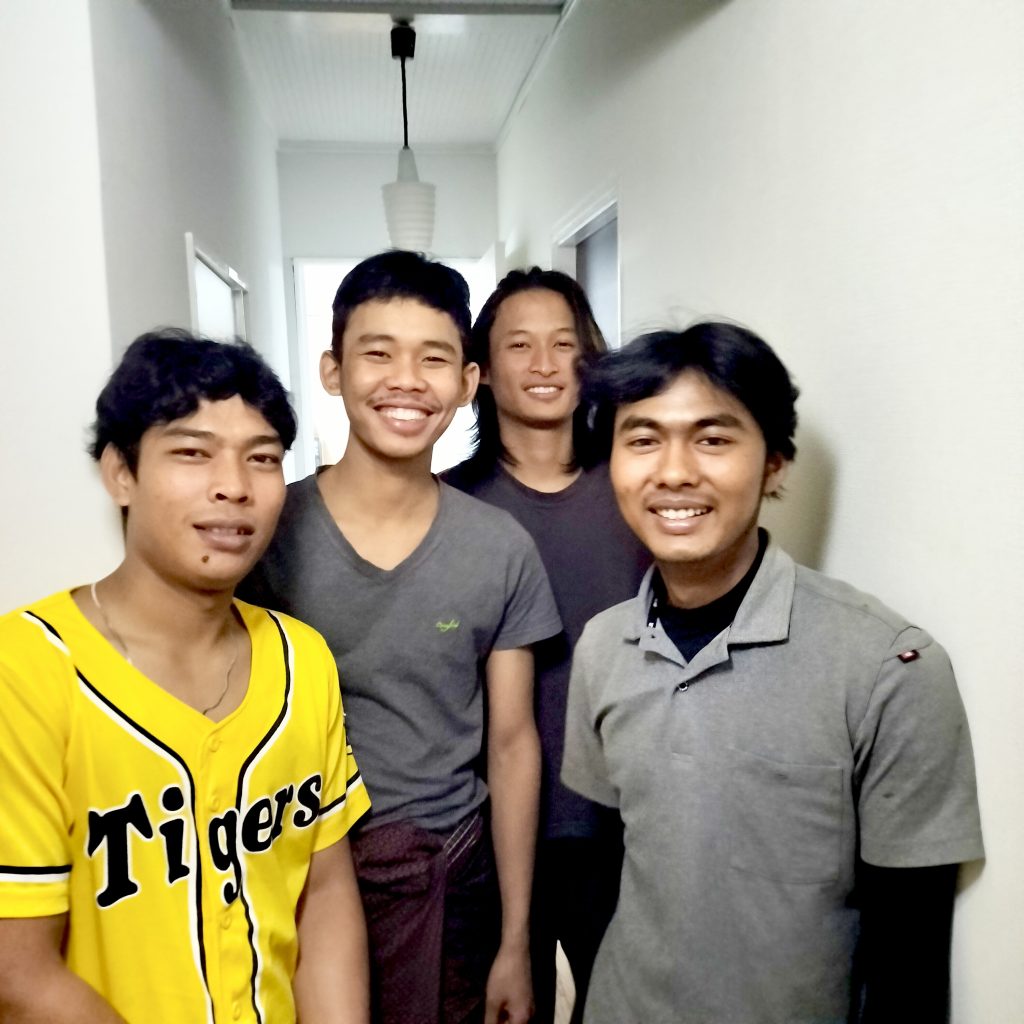 インドネシアから来た後輩2人は1年早く来たミャンマー人の先輩ととっても仲良し。部屋に行くと4人で楽しそうに日本語で会話をしています。