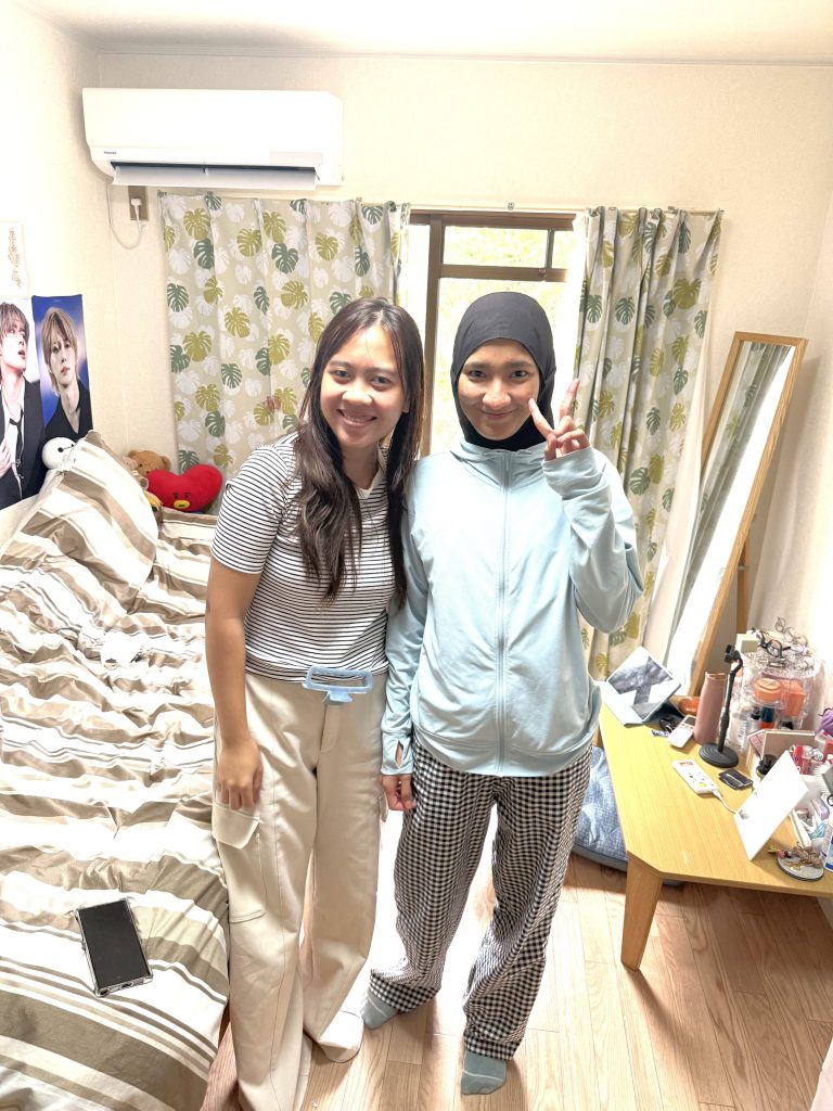 インドネシアの大学時代からの友人でとても仲良しの二人。今は技能実習3号として実習しています。一緒に料理を作ったり、出かけたり楽しく過ごしています。2人も介護福祉士の資格をとりたいと強く思っており、研修も頑張っています。合格目指して頑張りましょう。
