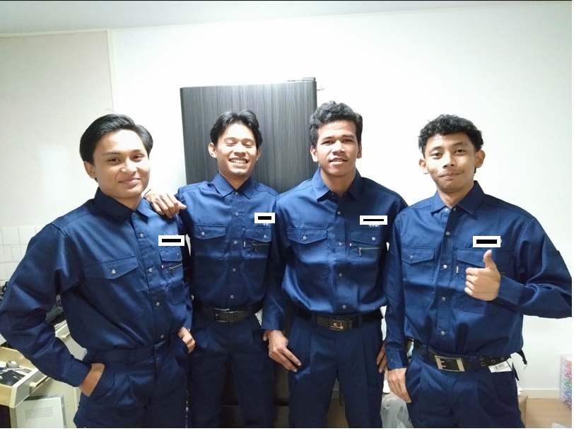 ご準備いただいた作業服を試着☆ 全員ピッタリで「かっこいい♪」と大喜びでした(*^_^*)