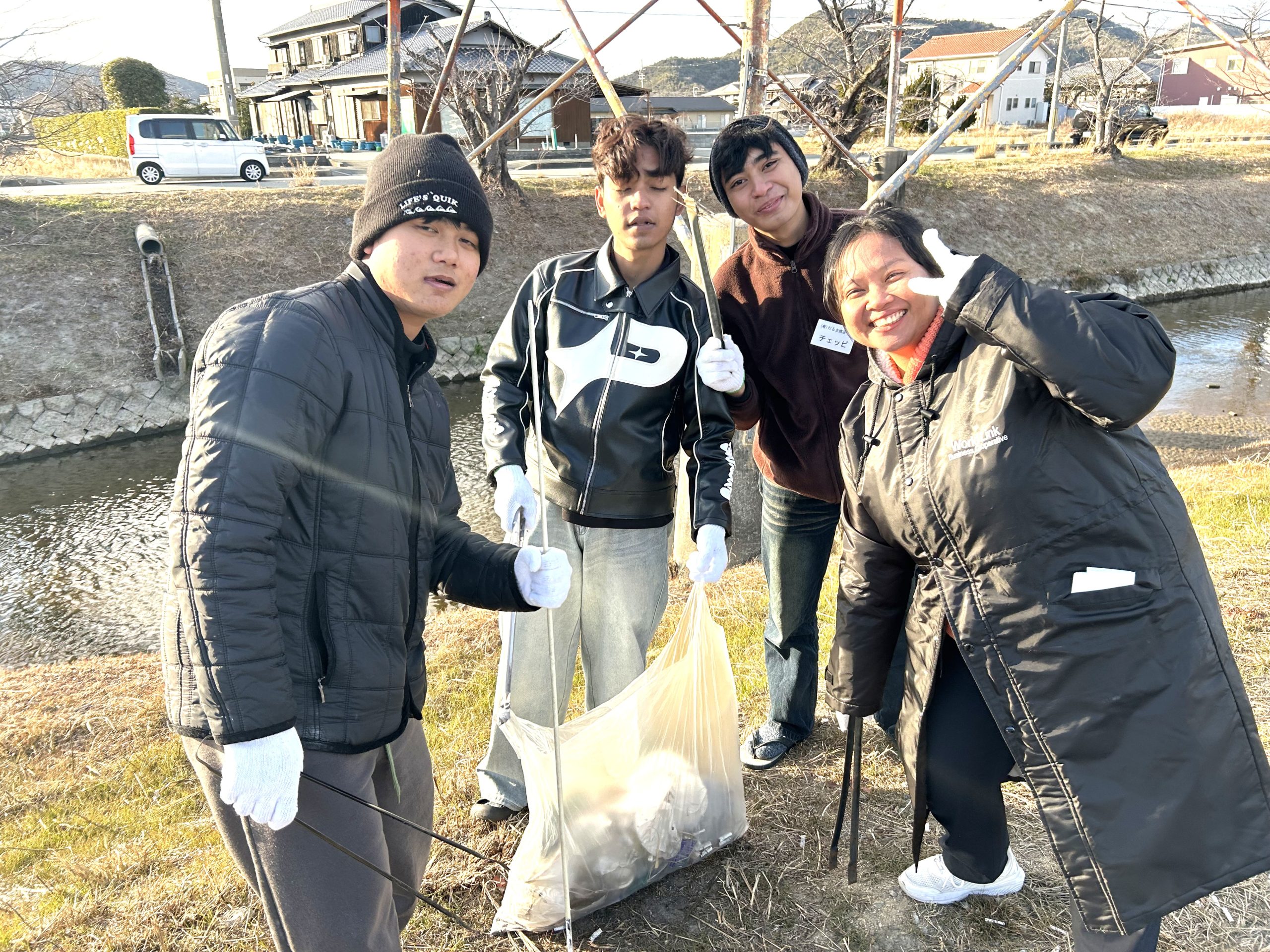 実習生と組合周辺のクリーン活動をしました。皆楽しみながらゴミを拾いをして、ゴミ回収後は仕分けです、燃えるゴミ、缶、瓶と日本の仕分けルールも学びました。